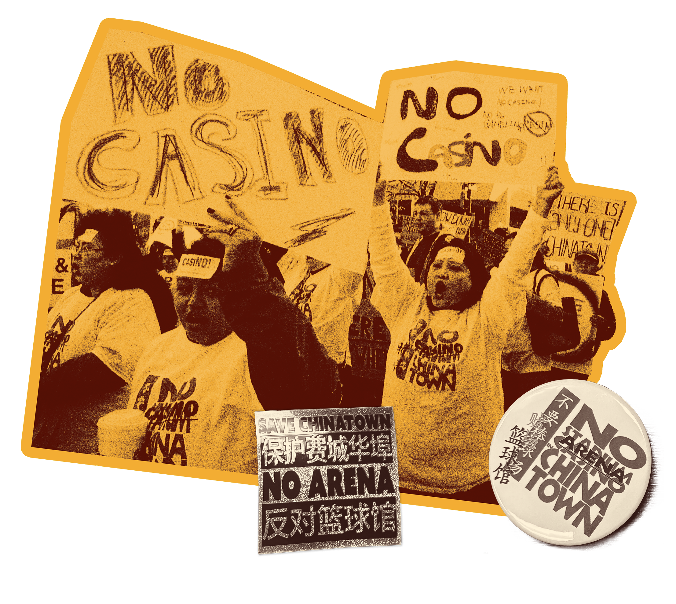 Wheatpaste posters around Chinatown during the No Arena movement. (2023) Lauren Lowe ’17